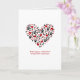 Vit kort med svarta tassavtryck och röda hjärtan i hjärtform med “Önskar dig ett hjärta fullt av vackra minnen” under i rött.