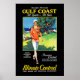 Vintage reseaffisch för järnvägstrafik där man vill marknadsföra Vackra Mississippi och Bukt Kusten som ett år runt sport- och semestermål.