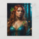 Moder natur i en blå klänning med vacker röd hår och några gröna murgrönsblad i håret AI-genererad konst