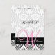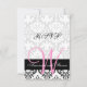 Svart och vitt unikt damastmönster med rosa monogram, anpassningsbart bröllop RSVP-kort. Vackert bröllop RSVP-kort med rosa monogram i damast. Design av Elke Clarke för Monogram Gallery. Anpassa med ditt monogram, namn och bröllop RSVP-text. För fler alternativ för redigering, använd "anpassa" för att ändra textavstånd och färger. Eller kontakta luxuryweddinginvitations@gmail.com för hjälp. Grafik licensierad för användning.