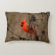 Fantastisk röd fågel i grenar på en död eller fallande träd med brunt löv. Bakgrunden gör att fågelfjädrarnas ljusröda färg står ut och faller.