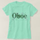 Söt Oboes musikdesign kommer på kvinnans oboistiska t-shirt. Grönt och rosa snurrar runt en Oboe-logotyp. Bära till orkester- eller bandrepetitionssalar eller runt stan för att strypa din oboe som spelar saker.