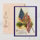 En vacker reproduktion av ett gammalt fjärde julikort, det har redigerats för att städa upp bilden, och det har en reproduktion av ett gammalt vykort på baksidan så att du kan skriva ett meddelande. Skicka det med posten eller ge det med en fjärde juligåva för att lägga till en touch av nyckfullhet. Den har en design av en flagga med en präglad mässing 4 på en mörkblå bakgrund.