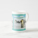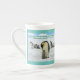 Den vackra Penguin Scripture Bone-Chinan Mugg på en färglös, detaljerad snöarktisk arktisk scen av far kejsar Penguin som böjer sig framåt för att trösta en baby kejsar Penguin som ligger mellan hans fötter medan en kejsare Penguins marsch bakom dem. Den här scenen följer Bibeln 1 John 4:16, "Gud är kärlek, och han bor i kärlek bor i Gud, och Gud i honom." Den här Bone China Mugg ger en underbar gåva eller kan användas för att påminna oss om Guds Ord.