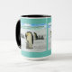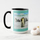 Vackra Penguin Scripture Mugg på en färglös, detaljerad snöarktisk arktisk scen av far Emperor Penguin som böjer sig framåt för att trösta en baby kejsar Penguin som ligger mellan hans fötter medan en kejsardel Penguins marsch bakom dem. Den här scenen följer Bibeln 1 John 4:16, "Gud är kärlek, och han bor i kärlek bor i Gud, och Gud i honom." Mugg ger en underbar gåva eller kan användas för att påminna oss om Guds Ord.
