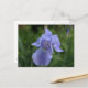 Rätt närbild av Periwinkle Iris med gul vit mitt och grönska. Knopp på lång stjälk i bakgrunden. Originalfotografering av TamiraZDesigns.