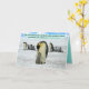 Vacker pingvinskriptkort med en färgrik, detaljerad snöig arktisk scen med en kejsarpingvinpappa som lutar sig framåt för att trösta en unge som står mellan hans fötter medan en rad kejsarpingviner marscherar bakom dem. Scenen åtföljs av Bibelverset 1 Johannes 4:16, "Gud är kärlek, och den som förbliver i kärlek förblir i Gud och Gud i honom." Detta kort gör en underbar present eller kan användas för att påminna oss om Guds ord.