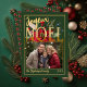 Enkel elegant familjefoto med riktig guld folie "Joyeux Noël" (God Jul) poinsettia blomsterdesign med en rektangulär foto Jul firande design. Baksidan har ett poinsettia mönster. Alla guld områden är fejk (digitalt skapad guld gradient) med undantag för namn och år mallar. De är platt guldton enkel färg tryck. Denna design finns tillgänglig både som utskrift och / eller digital nedladdning, men finns också i en version med äkta guld folie tryck via separat köp i vår butik.