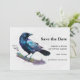 Spara datumkortet med en underbar vattenfärg teckning i en kråka. Mörk blått och dynamiskt lila färg betonar denna fågels skönhet.