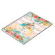 Söt illustration av en liten räv omgiven av ömtåliga blommor. Bakgrunden har vattenfärg rosa och vita ränder och gnistrande gyllene glitter.