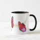 Det här är en söt mugg hemma eller på kontoret, med tre pulserande röda och violetta rosa-fjäril-bilder runt perimetern. Mittfjärilen har också beröringspunkter med gult, grönt och blått på spetsen vid vinge. Bakom fjärilen är bilder en trail av guld-stjärnor, och ert namn är svart under fjärilen i mitten. Allt placeras på en vit bakgrund.