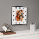 Klocka med en vacker illustration. Ett kopparbrunt hästhuvud och övre kropp i kastanjebrunt. Med akvarellfläckar i bakgrunden.