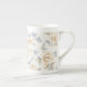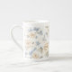 Vacker Romantisk Blå Krämfärgad Blomma Benporslin Mugg