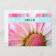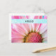 En hej vykort med en livfull rosa och vit blomma. Närbildsfotografi av denna förtrollande blomma fångar verkligen din uppmärksamhet. En pastellblå akvarellremsa med hej eller din personliga text inuti.
