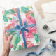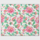 Elegant ljusa rosa blommor och grönt löv utan sömn mönster. Fin design med utbytbar vit bakgrund.