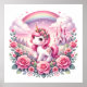En söt rosa enhörning med ett sagoslott och regnbåge i denna förtjusande design perfekt för ett barns födelsedagsfest eller för en barnkammare eller ett barns sovrum.