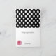 Stilrent tacksamt brevkort gjort i vitt, på höger framsida, och svarta och vita prickar, på vänster del av kortet. Grafik av ett rosa band skiljer bakgrunderna och är dekorerad med en rosa Gerber-daisy. Svart text läser Tack, på framsidan. Personifiera texten inuti och utanför för att passa dina behov.