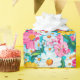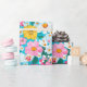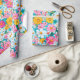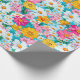 Ett vackert blått, rosa, vitt och gult retroblommigt inpackningspapper som passar till många tillfällen under sommaren.
