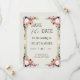 Denna vackra rosa och vita Blommigt Spara datumkortet är designat att fånga med dess mjuka elegans. Den visar en charmerande bukett av rosa och vita blommor, som är perfekt arrangerad mot en fin, drömmande bakgrund. Det tillför sofistikering och lite romantik, skapar det vara ett val för perfekten att tillkännage ditt speciella datum med stil och nåd. Idealisk för par som vill ha en blandning av timelfri skönhet och modernt luft