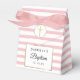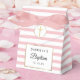 Med en vacker rosa och vit randig bakgrund har denna eleganta dop- eller dopfavoritlåda en elegant falsk guldfolie ram runt dina evenemangsuppgifter i chic typografi och ett speciellt tackmeddelande på baksidan. Designad av Thisisnotme