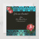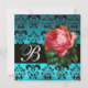 VACKER ROSA ROS BLÅ SVART DAMASK MONOGRAM INBJUDNINGAR