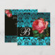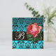VACKER ROSA ROS BLÅ SVART DAMAST-MONOGRAM INBJUDNINGAR