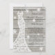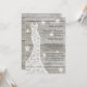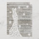 En romantisk klänning i snöre bröllop accentuerar i inbjudningskort för möhippan på en luddbordsbakgrund. Detta koordinerar perfekt med vintern land, rustik, boho eller lada bröllop. Rulla ner för att se samordningsposter.
