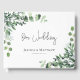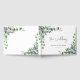 Redigera brudens och brudgummens namn enkelt. Omslaget är dekorerat med handmålade akvarell-eukalyptusblad i nyanser av salvia grön och dammig blå. Den vackra rustika eukalyptusbröllopets gästbok.