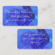 Den stenande blåa dahlia blomningen flyter elegant mot en bakgrund med oljefärg. Fantastisk i den här blommigten är akvarier, safir, vinkan och djup marin. Skriptet för din information är en ljus, nästan vit blått. Skriptet är modernt och underbart chic. Det finns en mall på baksidan för ytterligare information som du kan vilja lägga till. Ta bort standardtexten om du behöver information på baksidan av telefonkortet.