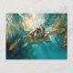 Vacker Sea Turtle Gliding genom Vatten Vykort