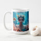 Snygg sjöjungfru under havet under vattnet med korall och fisk. Fantasi AI-konst.