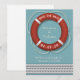 Vår vackra sjöman-stilkort med en sjöräddare ramar in de viktigaste detaljerna om din bröllopsdag, inklusive datum och plats, inom en vacker kombination av rep och sjöräddare.