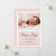 Vacker Skript Flicka Födelse Annonserings Kort. Detta vackra 'välkommen lilla ängel' skript med en minimalistisk design kan fullständigt anpassas för att tillkännage födseln av din nya lilla flicka. Välj din egen enfärgade bakgrund för baksidan av kortet för att matcha ditt babys foto och matcha färgen med den främre underläggningen under texten. Ändra teckensnitten till dina egna önskemål och lägg till din babys information.