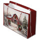 Vackert Snowy Winter Rustic Red Barn-julklapp Stor gift Bag