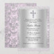 Vacker spets rosa första kommunion inbjudan. Elegant juvelkors & vit spets. Rosa & silver. Observera att alla platta bilder! de har inte riktig spets eller juveler!