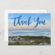 Denna pittoreska personliga strandbröllop tack-kort har den vackra rosa och orangea solnedgången som försiktigt vidrör havsvågorna ovanför sanden och havsgräset på en vacker dag i Destin, Florida. Vackra havskort för ett par som hade ett destinationbröllop på Hawaii eller Florida.