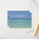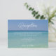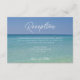 Det här vackra strandmottagningskortet har en lugn bild av havshorisonten för ett destinationsbröllop på kusten under sommaren. Bjud in dina gäster till ett vackert tropiskt bröllop på en strand eftermiddag på din favoritö. Färdigt med chic vitt skript för en exklusiv kustlook.