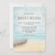 En bröllopsinbjudan med en vacker och lugn bild. Subtila färger i ljust blått, sandigt brunt och mjukt vitt. En strandscen med en båt på stranden och en bleknad fyr i fjärran med fåglar flygande runt omkring. En elegant shabby look.