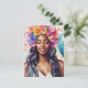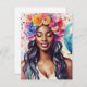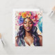 Denna akvarellkonst visar en vacker svart kvinna med slutna ögon som bär en blomsterkrans i en feststämning. Den melaninrika skönheten är omgiven av mångfärgade ballonger och konfetti, med en lugn uttryck och ett leende på hennes vackra bruna ansikte. Detta färgglada festliga konstverk passar för födelsedagar, pensionsfester, skilsmässa firande, möhippor och mer!