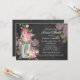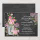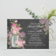 Svart tavla bröllopsfest inbjudan. Vacker rosa blomsterdekorerad murglas och svart tavla design. Observera, alla platta bilder!