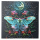 Vacker Teal Blue Grönt Luna Moth Måne n Flowers Kakelplatta
