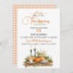 Ren och enkel INBJUDAN TILL THANKSGIVINGMIDDAG med rolig pumpa-dekorerad bordsuppställning.