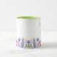 En speciell gåva till brudens mor, denna vackra färgglada mugg har en akvarell trädgård med vilda blommor med "brudens mor" i en elegant handskriven typografi i en mjuk grön färg som matchar interiören och handtaget. Personalisera med er bröllopsdag.