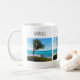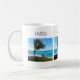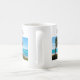 En mugg med en naturskön fotografering. Ett klart blått hav med en vit sandstrand.