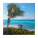Keramisk platta med en naturskön fotografering. En klar blå ocean med en vit sandstrand.