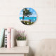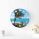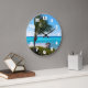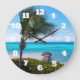 Ett ur med ett naturskönt fotografi. En klar blå ocean med en vit sandstrand.