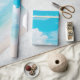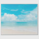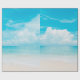 Vacker tropisk strand med blå himmel och vit c presentpapper