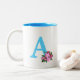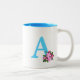 Vacker turkos monogram med äppelblommor Två-Tonad mugg