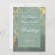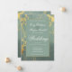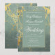 Modern och sofistikerad, turkos bakgrund med guldådrad bröllopsinbjudan. Du kan ändra teckensnitten på denna bröllopsinbjudan om du önskar.
