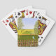 Spela kort med en vacker naturscen: En fågel som sitter på ett väderbitet staket, vilda blommor som växer runt staketet, en bonde på en traktor, som brukar sin mark, träd med löv, och jordbruksmark med olika färger. Bakgrunden, bilden och texten kan anpassas. Originalkonst av W.B.